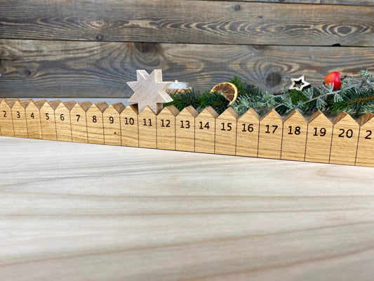 Adventskalender Holzleiste mit Stern mit Lasergravur, Eiche