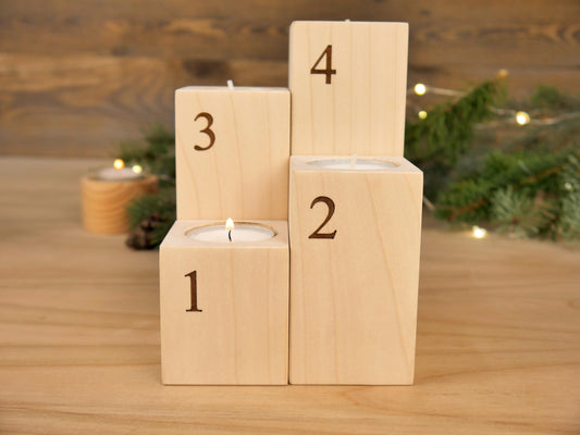 moderner Adventsleiste aus Ahorn - 4er Set für Teelichter